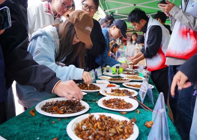 蝉蛹、蚕蛹、蝗虫、爬沙虫……这些常见昆虫配上油炸、红烧等烹饪方式会是什么味道?11月9日,在浙江农林大学第五届昆虫文化节上,10多种由昆虫烹饪而成的美食,吸引了不少师生的关注和品尝。